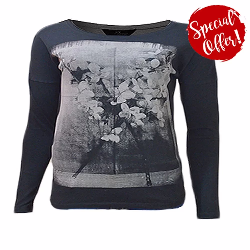 This Tee features Front Floral print,Black Color,full sleeves,scoop neck mesh details,and 30% Hosiery 70% Cotton fabric which provide softness to you.