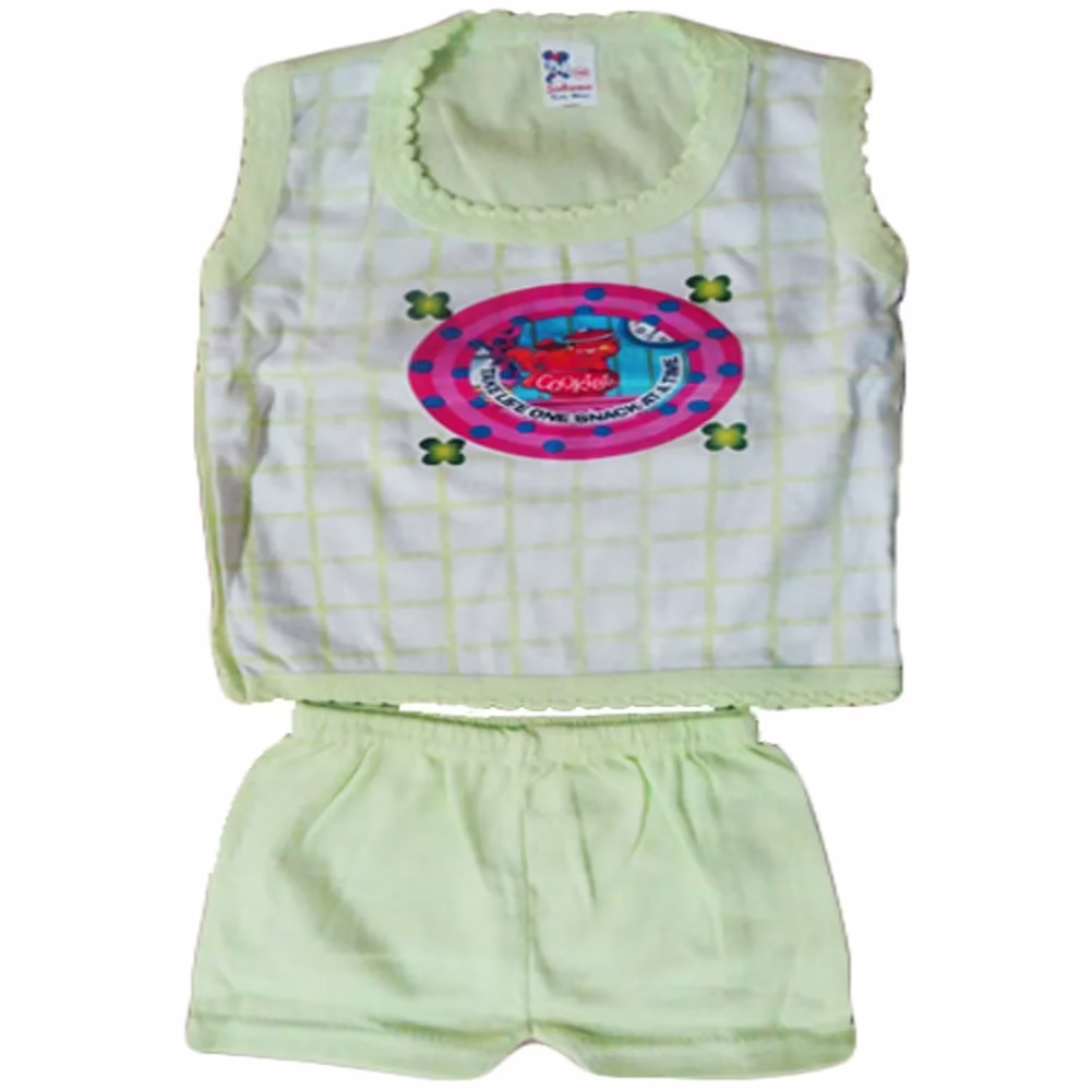 Green Newborn Sleeveless T-Shirt with Front Patch and Short Set from the house of Seasonsway’s can be worn by both Baby Boys and Girls of 0-6 Months and its hoisery fabric will keep your kid warm and comfortable this winter featuring round neck,front patch,sleeveless t-shirt with beautiful short,mesh details is surely going to have a great quality fashion and comfort combination.