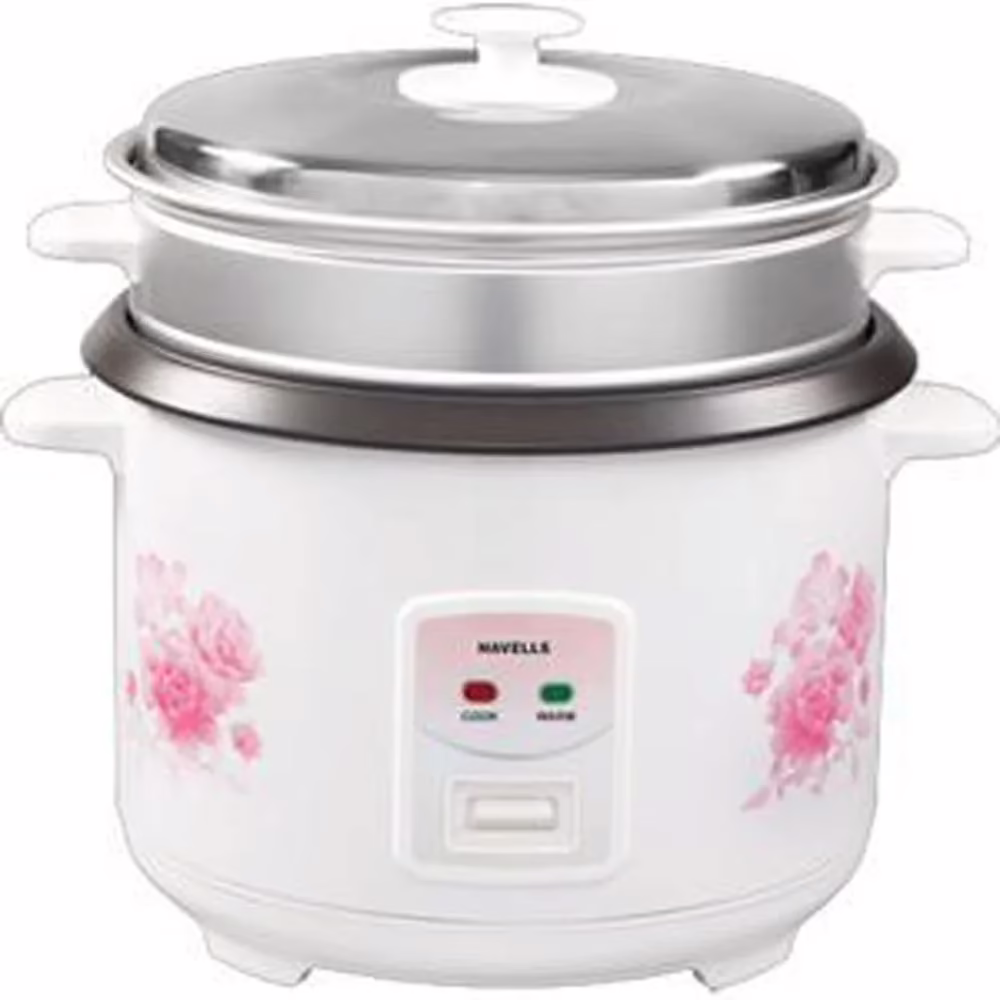 The Havells Electric Rice Cooker Max Cook 2.2 is attractive to own as it is feature rich and easy to use. This cooker comes with two aluminum cooking pans that not only aid in cooking rice but also other items such as porridge, soup, pulao, idlis and stews. As it uses steam, it is also a healthy cooking option. This Havells electric rice cooker has different cooking modes such as keep warm and speed cooking. With the variety of dishes you can cook with this electric rice cooker, it is an essential kitchen appliance.