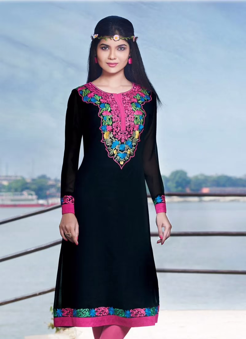 Suit Features -Pink Embroidered readymade kurtis made up of georgette fabric with long sleeves.This readymade long kurtis can be wear casually or ocassionally also..There might be some color variation.