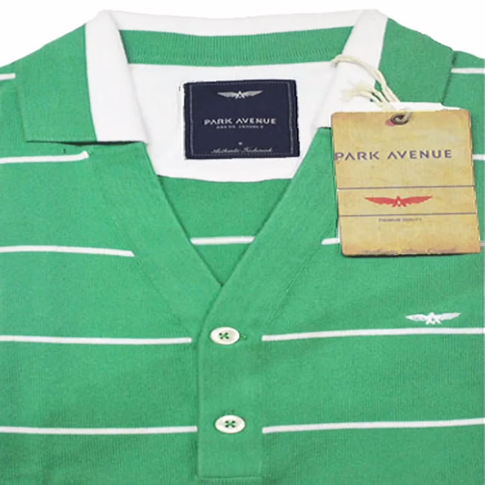 Park Avenue T-Shirt Features green white tipped collar neckline,authentic brand patch on front left,half sleeves,buttoned front placket,mesh detail and made from 100% cotton fabric keeping you comfortable,sweat-free and fresh.