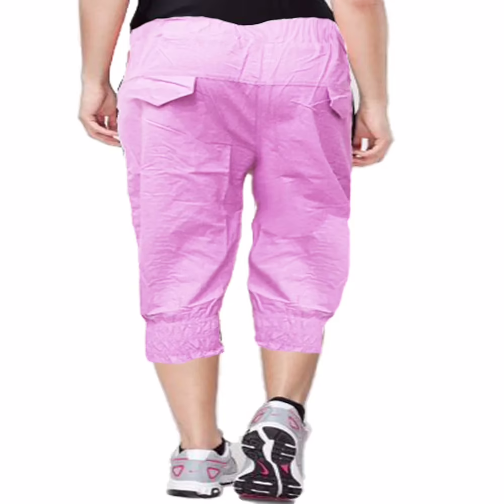 Capri features Elasticated waist and bottom,both side pockets,back flap and fron button patch design,mesh detail and cotton blended Fabric which provide comforness to you.