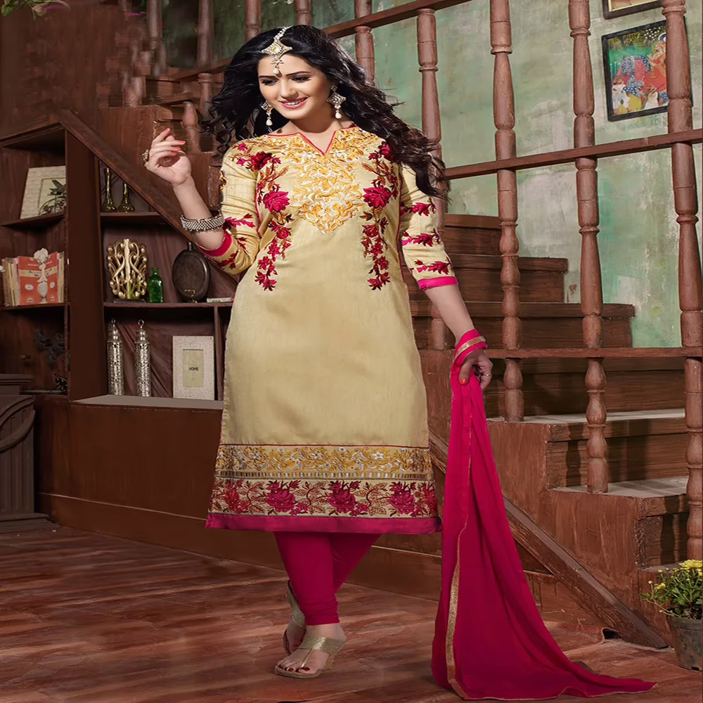 Viva N Diva Beige Colored Bhagalpuri Suit