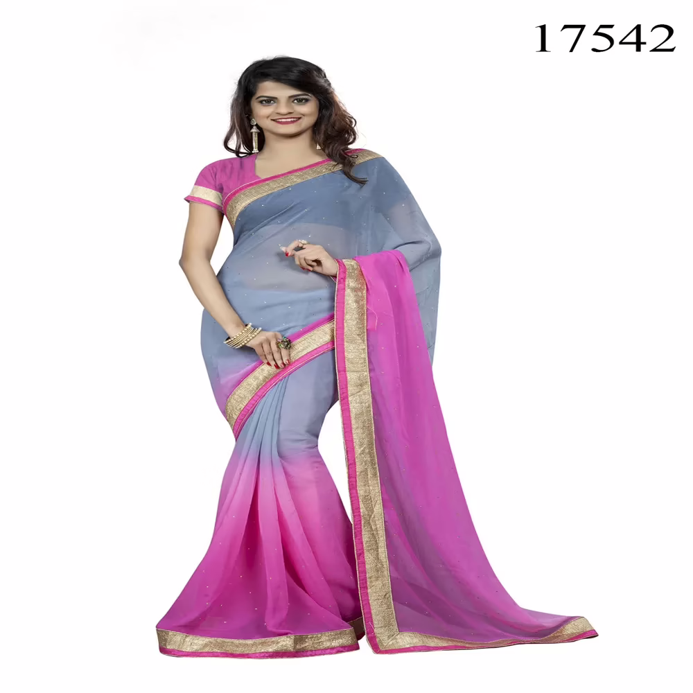 This Viva N Diva Grey & Pink Colored Chiffon Saree Saree which keeps you fresh and comfortable all day. The one who are desperate about their outfit style trend can prefer this awesome collection this attire gives you satisfaction as it adjoins the exclusive structure to your outfit.