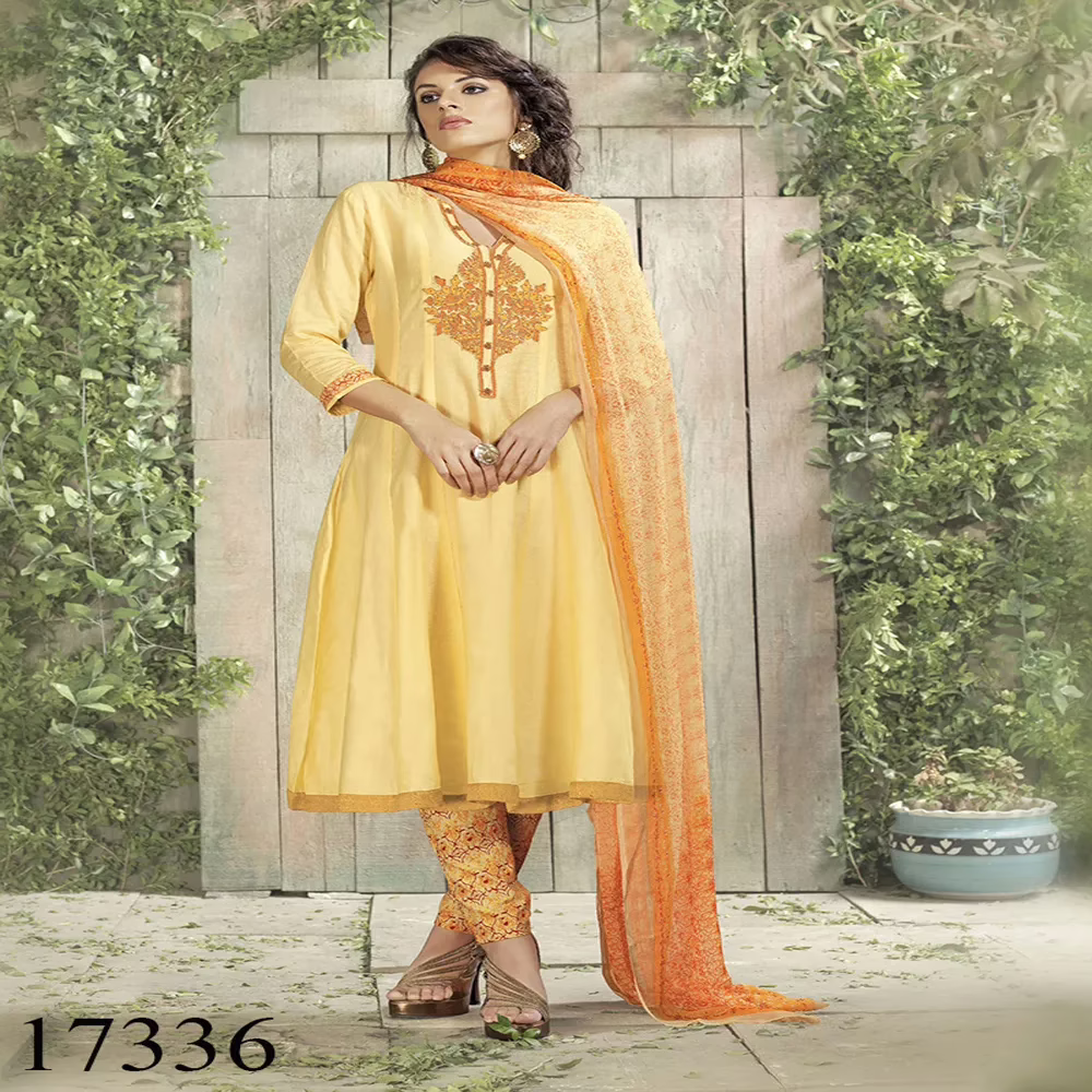 A splash of Light Yellow colours is this Semi Stitched Salwar Suit set from V&D, owing to the ikat Lace Border on the kurta. The suit set comprises a printed kurta, with an light yellow semi stitched salwar and Chiffon dupatta. Beautiful neckline with 3/4 sleeves gives a chic look to the kurta of this set. The 100% Cotton fabric construction makes this suit set light and highly comfortable. This kurta can be teamed with minimal jewellery and ethnic footwear.