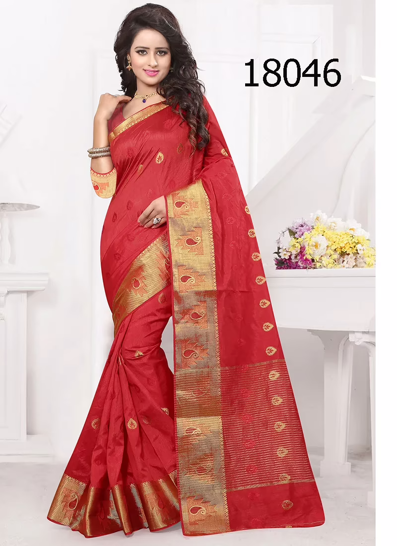 This Viva N Diva Red Colored Banarasi Silk Saree. which keeps you fresh and comfortable all day. The one who are desperate about their outfit style trend can prefer this awesome collection this attire gives you satisfaction as it adjoins the exclusive structure to your outfit.